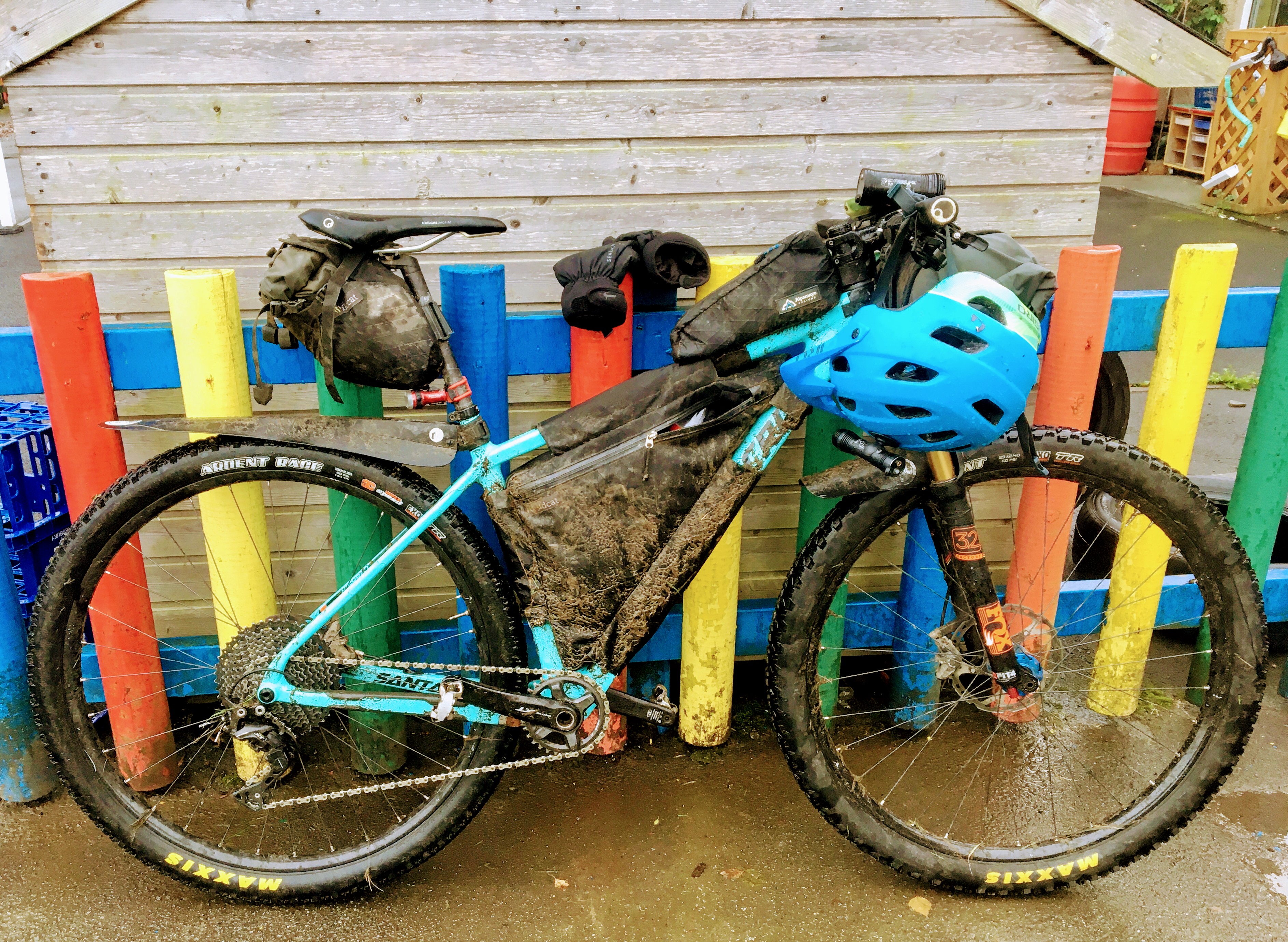 View of the Afon Mawddoch (river) pouring into the Irish Sea at BarmouthI arrived in Barmouth to find BB200 rider Gary at the chippy. We had a romantic fish and chips for two, hiding from the rain under a bridge. Richard and Charlotte came to support, spectate and heckle the riders as they rolled in.Photo courtesy of John Climber. Finished in 25:05.Photo courtesy of John Climber. A close up of my finish grimace.So much sheep shit. So much cleaning to do.